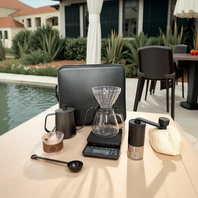 مجموعة كاملة: تتضمن مجموعة ماكينة القهوة هذه المكونة من 10 قطع مطحنة قهوة قابلة للتعديل، ومقطر استخلاص متعدد الطبقات، وحقيبة EVA، وميزان إلكتروني، ومطحنة يدوية، وغلاية سعة 600 مل، وكوب تقديم سعة 600 مل، ومقطر سعة 2-4 أكواب، وكوب سعة 250 مل، ومقياس حرارة، وورق ترشيح، وملعقة.