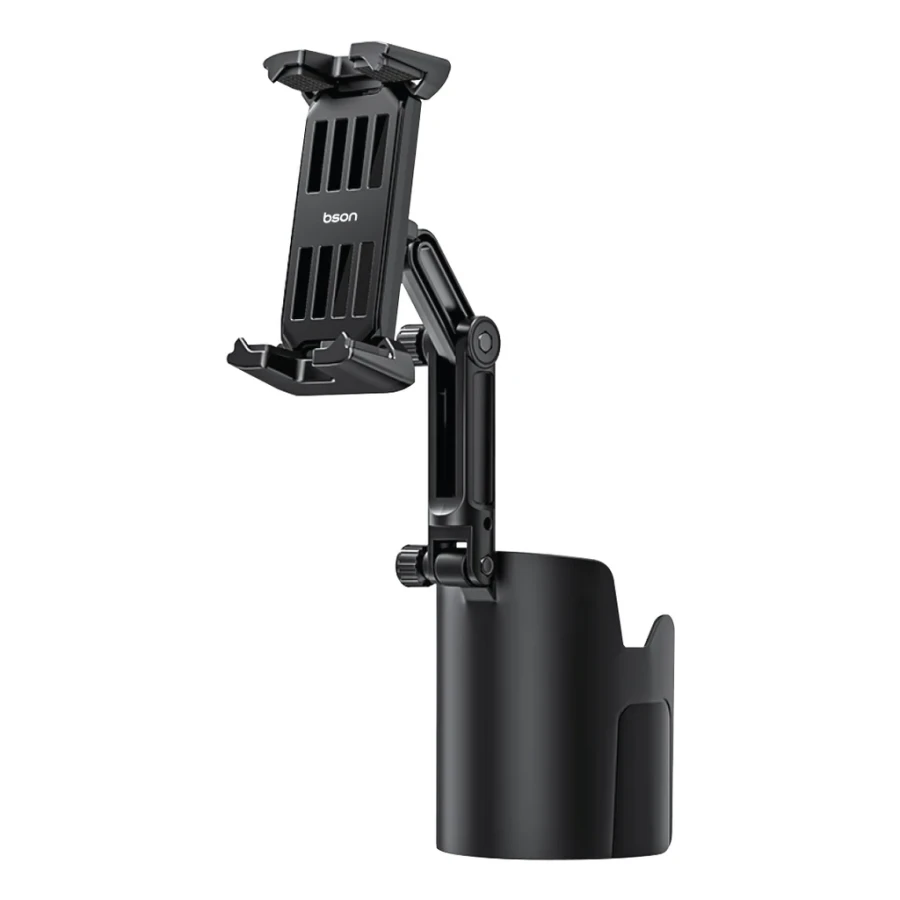 حامل الأكواب والهاتف الجديد من Bson، تصميم 2 في 1 يجمع بين حامل الأكواب وحامل الهاتف، يتميز بـ دوران 360°، وقاعدة قابلة للتعديل، وتشغيل بيد واحدة