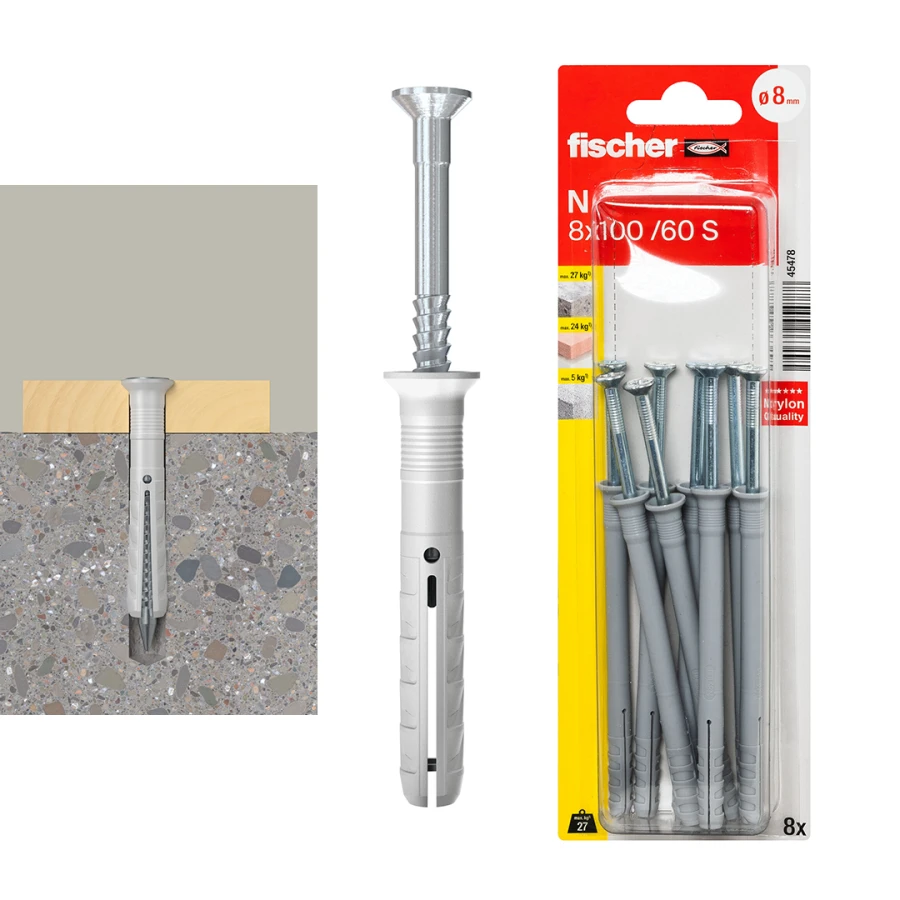 فيشر N 8 × 100/60 S K NV قابس مع برغي غاطس مضاد 8 قطع