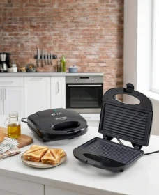 • أسطح غير لاصقة: مزودة بصفائح داخلية مطلية بمادة تمنع التصاق الطعام، مما يضمن لك سهولة استخراج الساندوتش وتسهيل عملية التنظيف. 🧼