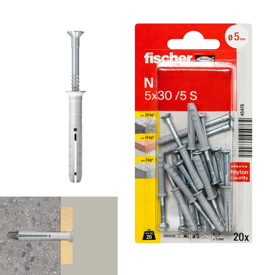 Fischer N 5 x 30/5 ZK BLISTER Plug + Counter Sunk Screw 20pcs