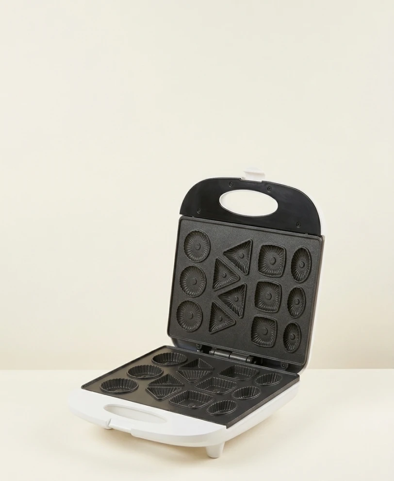 It features a powerful 1400W heating system for fast performance and consistent results. The non-stick coated plates ensure easy release of baked items and hassle-free cleaning. You can prepare up to 13 pieces in one batch with attractive geometric shapes—perfect for serving and special occasions.