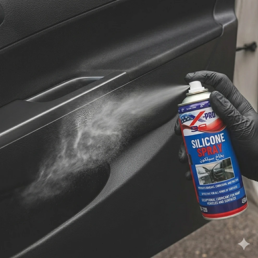 A high-quality silicone spray designed to lubricate and protect various surfaces in cars and around the home. It effectively reduces friction and eliminates squeaks, while protecting parts from rust and corrosion, helping extend their lifespan and maintain optimal performance.